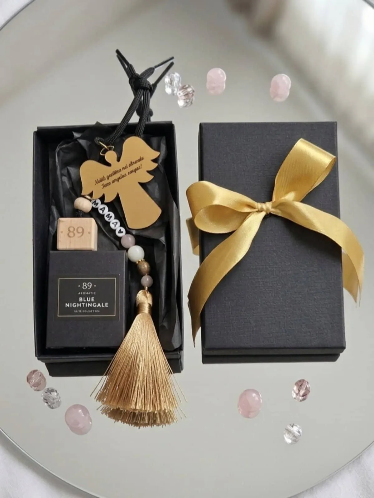 Svarbu: Kadangi kiekvienas gaminys kuriamas individualiai, smulkios detalės ar pakabuko elementai gali nežymiai skirtis nuo pavaizduotų nuotraukoje, priklausomai nuo turimų likučių. Nuotraukoje matomas kvapas taip pat gali skirtis nuo Jūsų pasirinkto varianto.